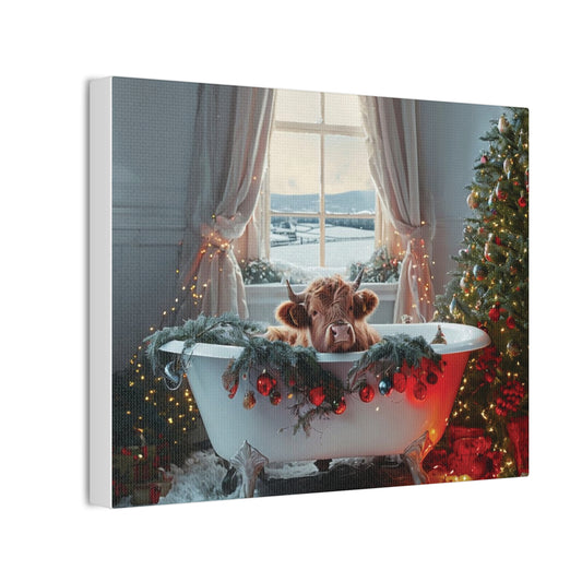 Canvas Art - Christmas Highland Cow in Bathtub